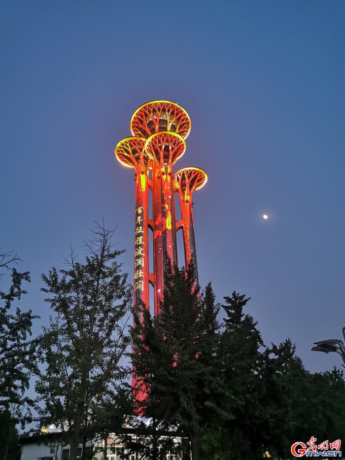 6月21日,黄昏,北京奥林匹克塔亮起。(张晓荣 摄)