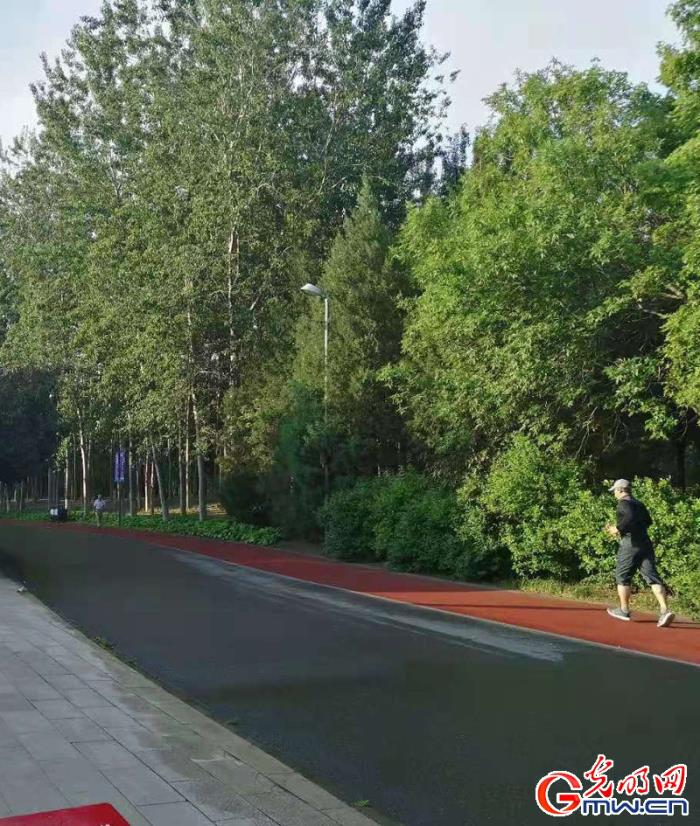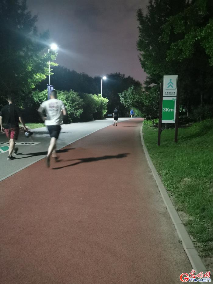 夏日,清晨的阳光透过树叶照进公园,小鸟不停的唱着歌,散步、跑步的人络绎不绝。趁着太阳刚刚升起,“天然氧吧”锻炼身体正当时。黄昏时分,余晖照耀下的公园,披上了霞光,又一番别样景象。夜晚,公园里的灯光渐渐亮起,锻炼身体的人有增无减,有的是情侣一起慢跑,有的是家长与孩子一起跑步,有的是结队慢跑,有的人不时拿起相机拍照,很是热闹。