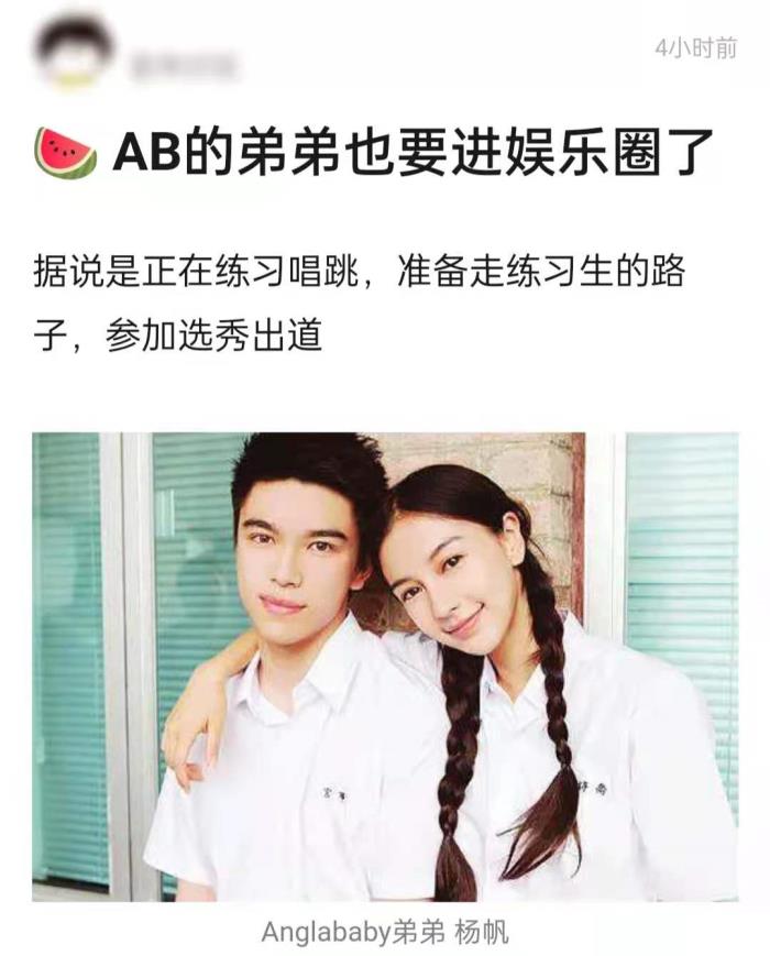 4月8日,有爆料称杨颖的亲弟弟杨帆将要进入娱乐圈,引发网友热议。