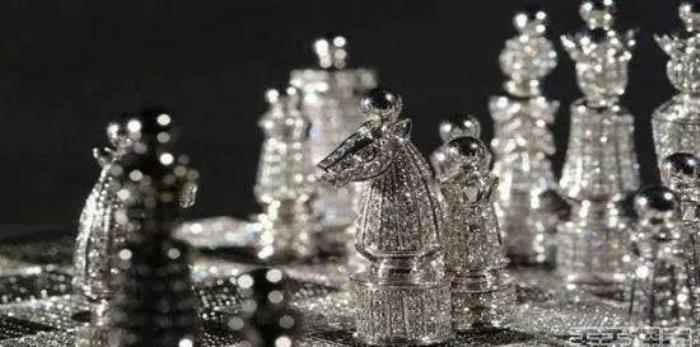 钻石国际象棋,价值60万美金。是用总共320克拉的黑色和透明钻石雕琢而成,是世界上最贵的国际象棋。有机会问问李世石,用这个象棋能赢机器吗?算了,他是下围棋的...