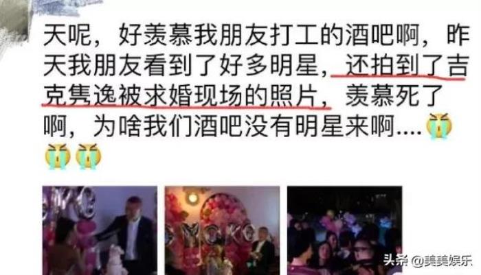 2019年,有网友爆料吉克隽逸在酒吧被求婚。
