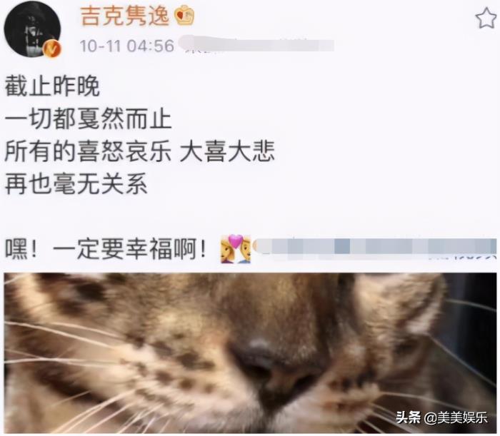 吉克隽逸也大方发文,简短的感慨后,祝福前男友未来一定要幸福。