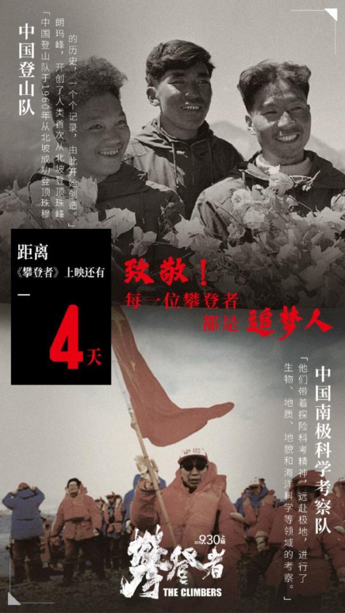作为国庆档重磅献礼之作,将于9月28日开启点映、9月30日正式公映的电影《攀登者》正是根据这段历史改编,讲述了方五洲和曲松林在气象学家徐缨的帮助下,带领李国梁、杨光等年轻队员从珠峰北坡登顶的故事。电影的阵容强大,吴京、张译、章子怡、胡歌、井柏然等演员组成的超强“攀登者联盟”把这段历史重新拉回人们的视线。
