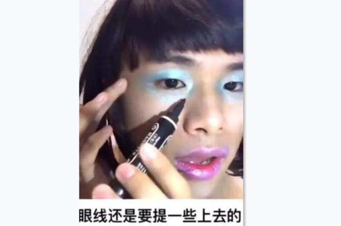 艾克里里,在镜头前,拿着两头的马克笔,开始给自己这个被粉丝标榜的“越南女星”化眼妆,细头画眼线,粗头画眼影,其妆容配上自己长得特色面容,真是“妙趣”横生。