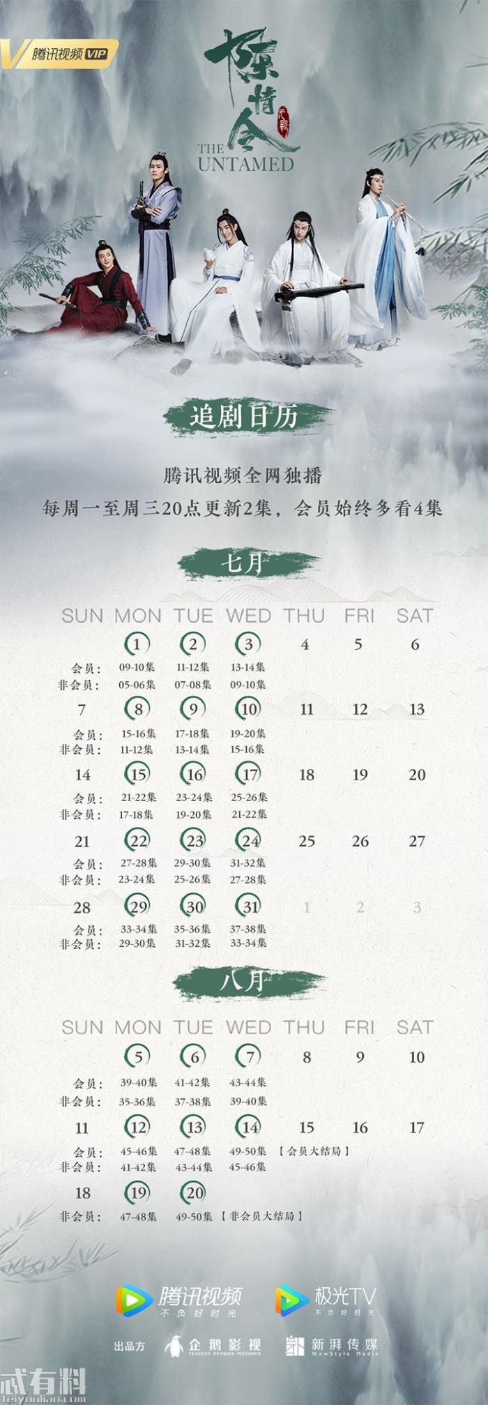 由《魔道师祖》小说改编的《陈情令》刚一播出就受到热议,这部剧还未播出就引来大批粉丝,大多来自于原著粉。该剧于6月27日播出,每周四、五更新四集,剧迷们表示不够看,一周太漫长,这不,求更得更,官方宣布更新时间改为每周一至周三更新六集。