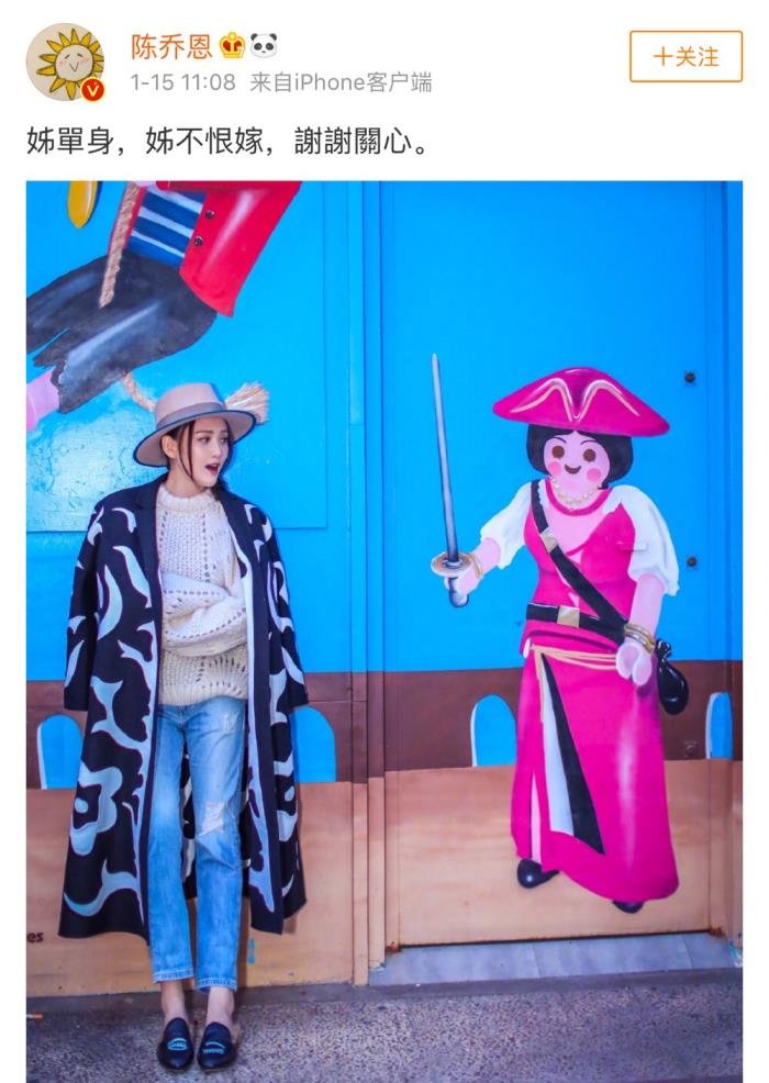 陈乔恩本尊也在今天发文,霸气回应:“姐单身,姐不恨嫁,谢谢关心。”这不仅澄清了她和杜淳之间并没有恋爱或结婚关系,也说明了自己现在的感情状态,正处在空白期。