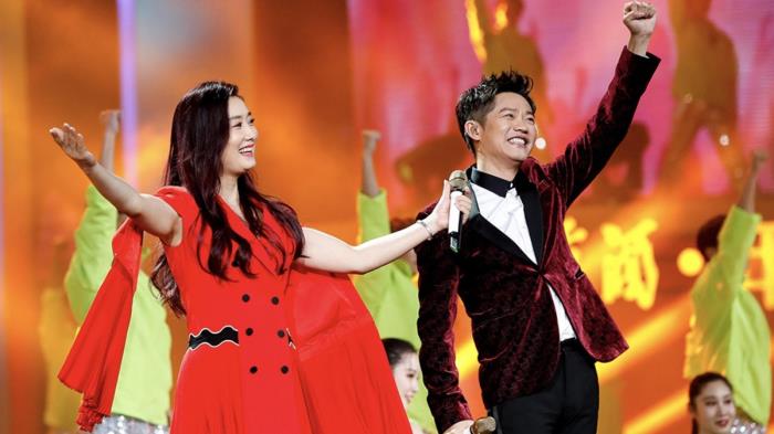 两个人唱《月亮之上》,一路冲进决赛。不过很可惜,对手阿宝表演和观众缘更胜一筹,凤凰传奇得了亚军。