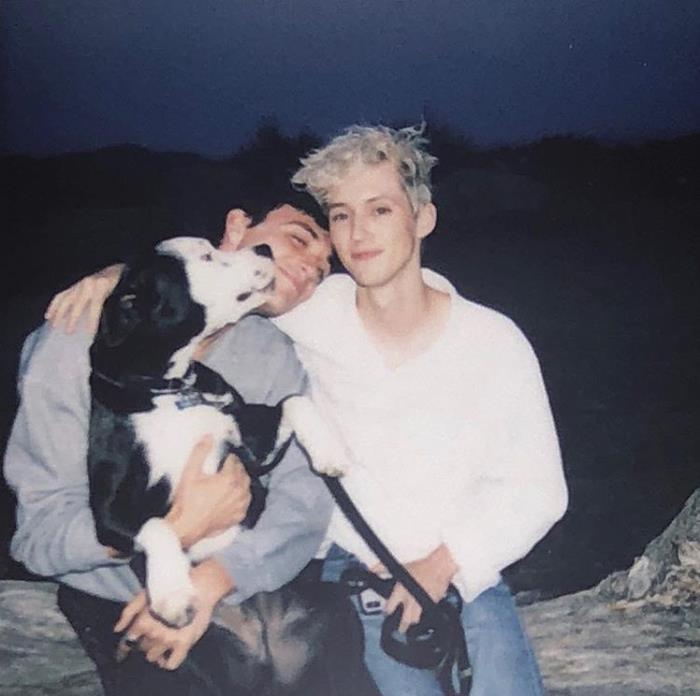 戳带着狗狗跟Jacob合影,Jacob小鸟依人状靠在戳的肩膀上,满眼都是幸福,粉丝戏称这是一家三口: