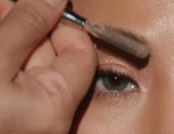 Step 3:再次用眉粉将眉毛之间的空隙填满,然后用眉刷顺着从眉头到眉尾的方向梳理,让眉毛看起来更加整齐。