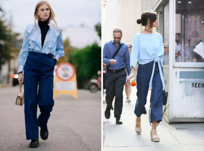 可以选择上下不同或是内外不同的两种蓝搭配,一深一浅,一明一暗,颜色丰富饱满。