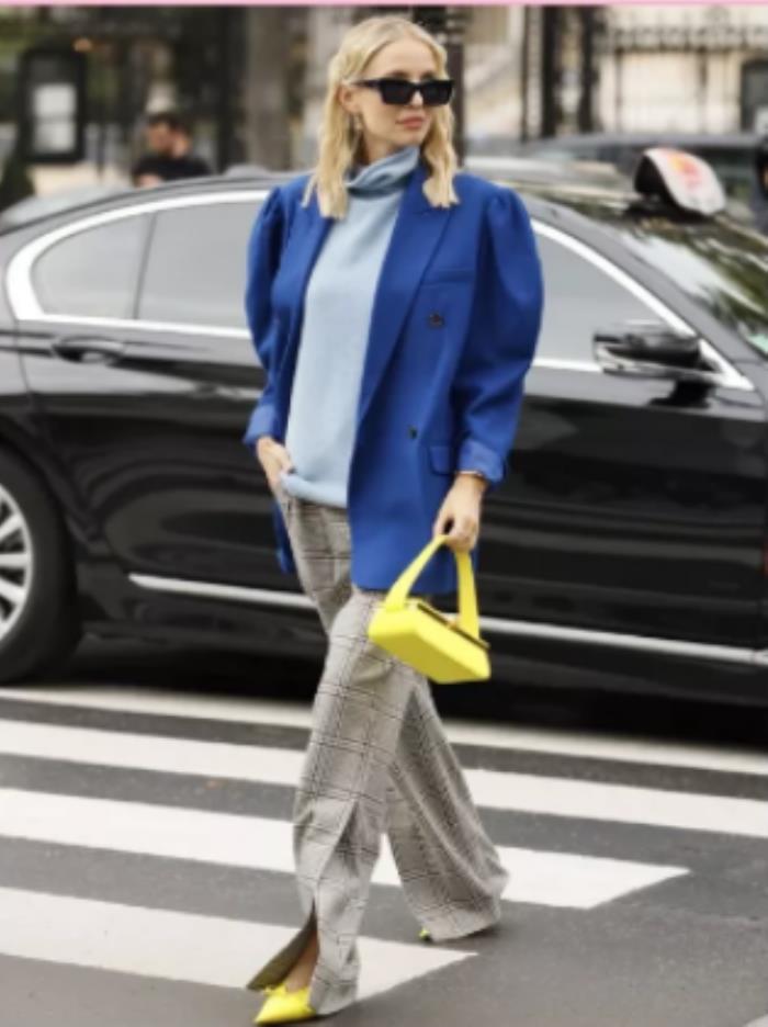 蓝色和黄色的搭配相得映彰,显白又有独特的风格。不过对于黄色,更建议选择明度高的黄色,搭配在一起不会显得沉闷。