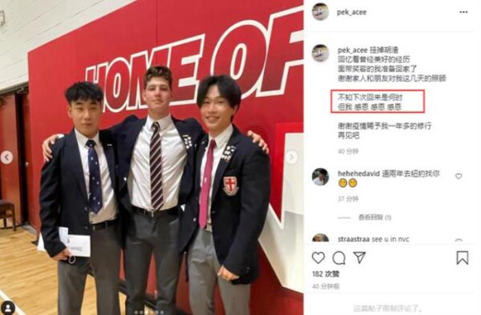 6月22日,陈坤19岁儿子陈尊佑晒照告别国外同学及朋友,还发文称:“刮掉胡渣,回忆着曾经美好的经历,面带笑容的我准备回家了,谢谢家人及朋友对我这几天的照顾 不知下次回来是何时 但我感恩 感恩 感恩 谢谢疫情赐予我一年多的修行 再见吧”。