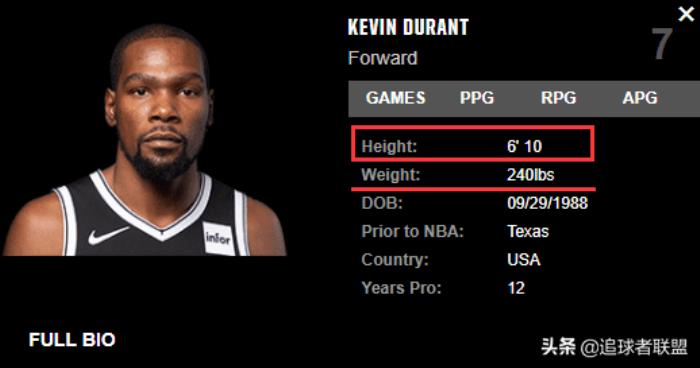 NBA新规要求联盟各支球队要在训练营开营一周之内提交球员的真实身高和体重,如此新规一出,联盟各大球星的真实身高瞒不住了,有人调侃联盟这是针对杜兰特,难怪球迷这么说,这么多年过去了,杜兰特的身高一直是个谜,那么杜兰特真实身高究竟是多少呢?破案了,终究是瞒不住了。