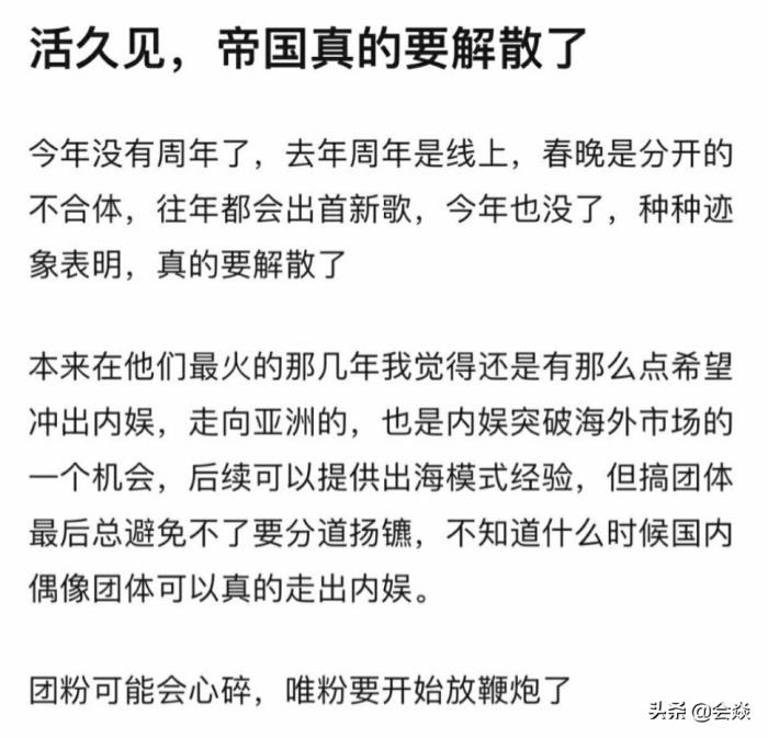 消息一出,很多网友都觉得不太可能,特别是团粉,有点伤心。但是也有网友分析道,如果真的解散了也能理解的,只是这个时间比想象中的要来得更早。