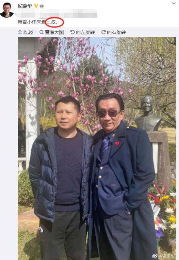 在不久之前,侯耀华曾晒出一张与何云伟一同祭拜何耀文的照片,并配文称:带着小伟来看三叔。 ”照片中,侯耀华衣襟敞开,单手插兜,微笑着面对镜头,完全没有悲伤的感觉。侯耀华脸上戴着墨镜,头发梳得油亮,如果不是身后的侯耀文雕塑,可能会让不少网友以为两人是在公园郊游。