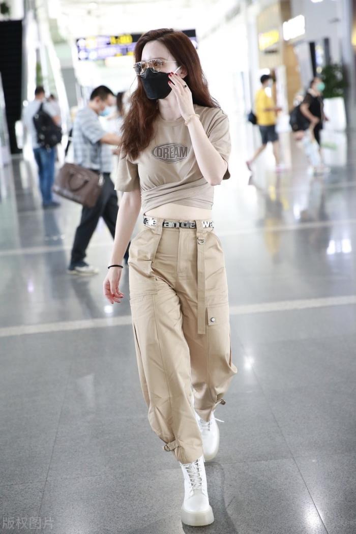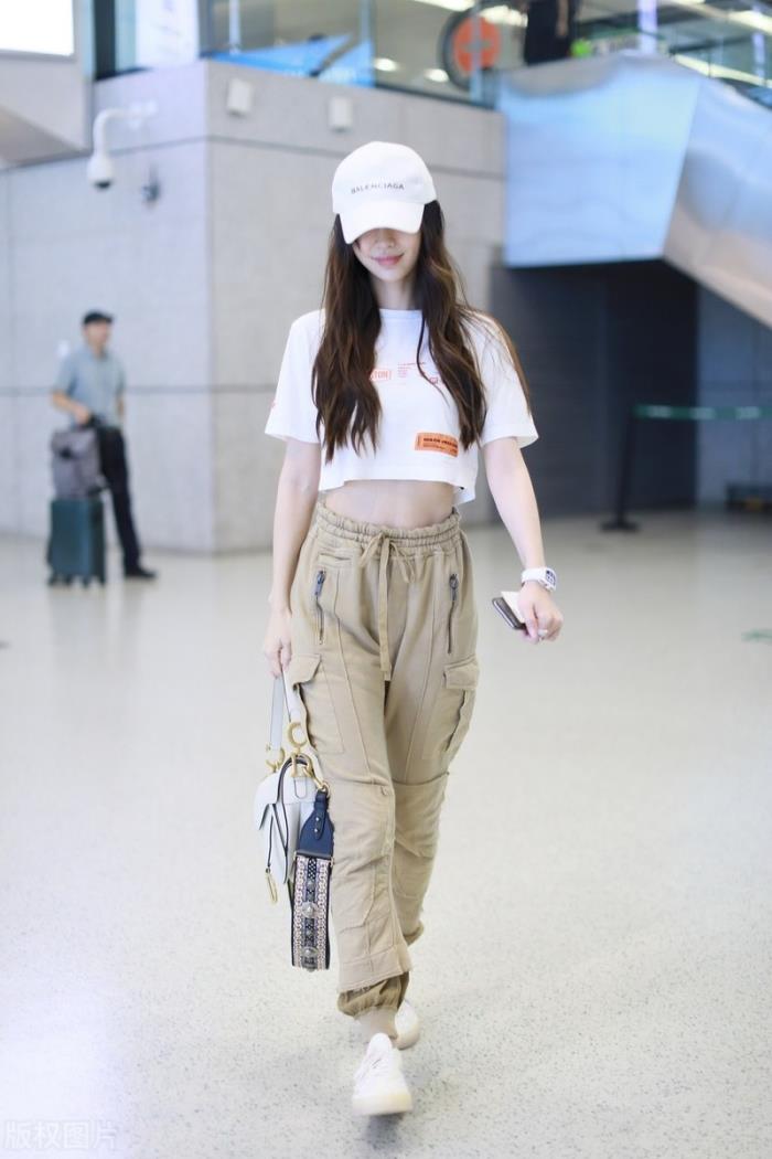 穿的是一件白色露脐T恤,秀出小半截纤腰,性感不已。工装裤虽然是当下很潮的一件时尚单品,但像杨颖这款束腿工装裤,却不是人人都敢尝试的,至少对于腿短的女生很不友好,像杨颖这种腿精级别的,自然不用担心显腿短的问题了。有了这件工装裤后,在原本性感的基础上,又增添了几分帅气,瞬间气场上线。