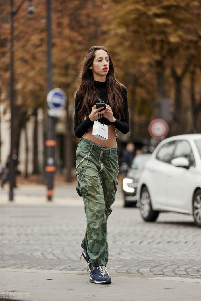工装裤与crop top的混搭,让你刚柔并济,展现性感帅气双重魅力。好身材才能够更好的诠释时尚穿搭的深层魅力。