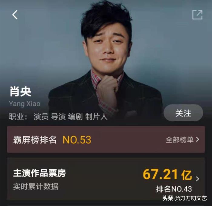 肖央个人的电影作品票房已达67.21亿,他也从配角到主角,一路以专业精神稳扎稳打,收获观众和行业的认可。