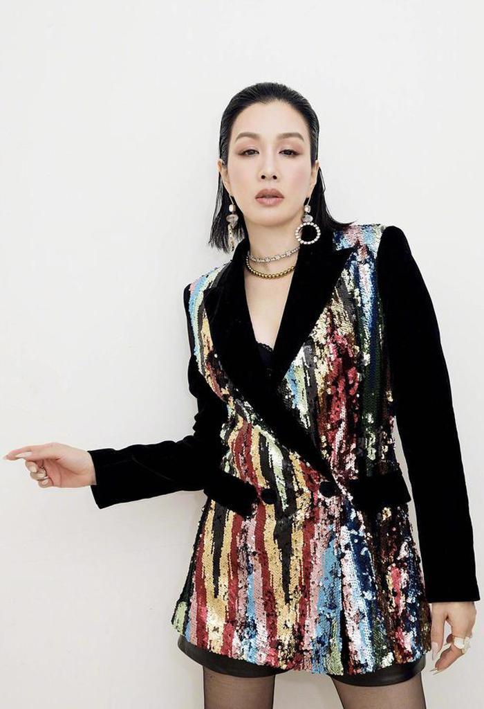 皮裤的款式多种多样,其中宽松皮短裤要比其他款式的皮裤更受女生欢迎。短款的宽松版型设计能中和皮质面料的厚重感,既轻巧又随性,凸显街头时髦感的同时修饰腿部线条。钟丽缇这一身LOOK就选择了亮片西装搭配宽松皮短裤,即便是纯黑的款式也为整身造型加了不少分,帅气又有型。