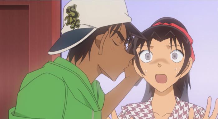 柯南以为“平次”发现了和叶的真实身份才时刻纠缠着她,殊不知此时的平次还沉浸在女装大佬基德的糖衣炮弹之下,根本没发现这一点。