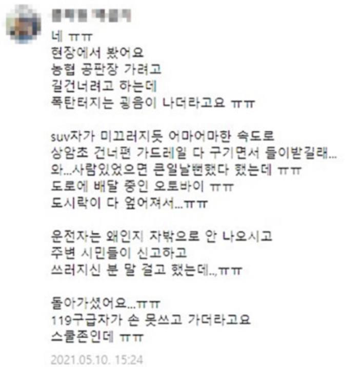 有目击现场的群众在社交平台上发文爆料,事故发生地是学校区域,原本就不允许高速行驶,而且朴信映在撞人之后不知道为什么一直待在车里,还是旁边的路人帮忙报警,并前去和外卖员说话,让许多网友都感到非常愤怒,指责朴信映太冷血。