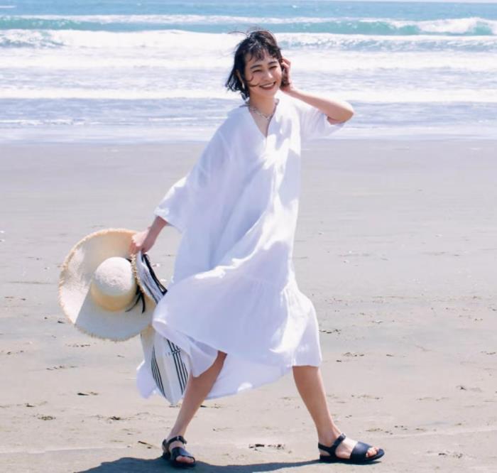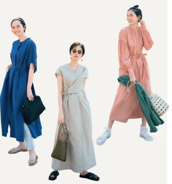 不必局限于裙型,只要有着明显的收腰放摆,将X型体现得尽兴的连衣裙,看起来都非常显瘦。而透气的棉麻、自如的宽松空间,则让清凉感如影随形。