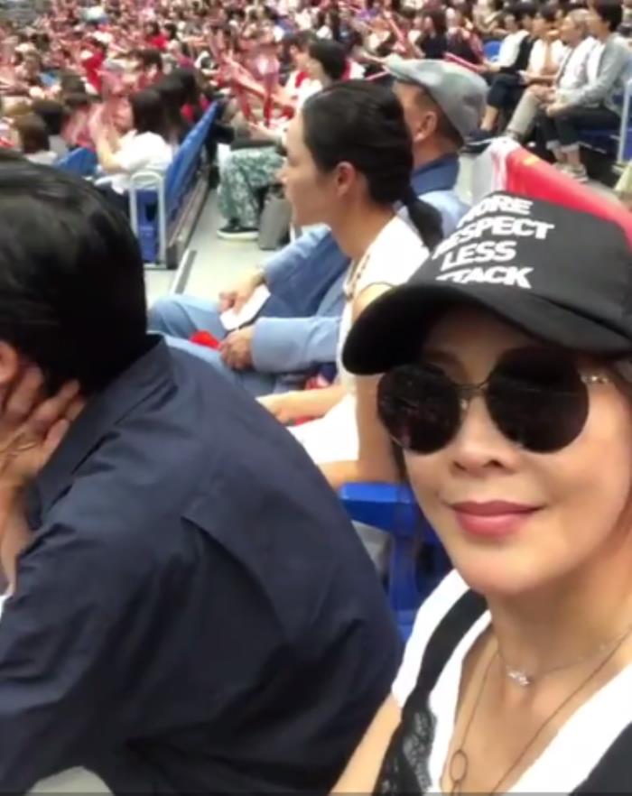 比赛过程中,刘嘉玲拿出手机自拍,不断地对镜甜笑,看上去心情超好,梁朝伟则神情专注地盯着场内情况。