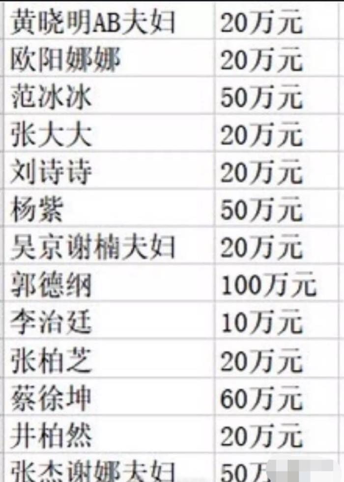 其实可以看得出来明星出席几场活动就已经是普通人一年甚至更久的收入了,而这些明星每年出入的场合还是很多的,而且开演唱会或者演戏演电影片酬更高,在看看这一次的明星们的疫情当前的捐款比起收入那就真的是九牛一毛都不到了,对于大家平日里常见的明星来说20万或者30万,还不够他们一天赚钱的,而这次疫情捐款出现最多的金额就是20万。