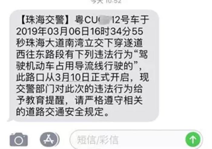 试抓拍期间,已有上千名司机压导流线被抓拍,他们都收到短信提醒。▼