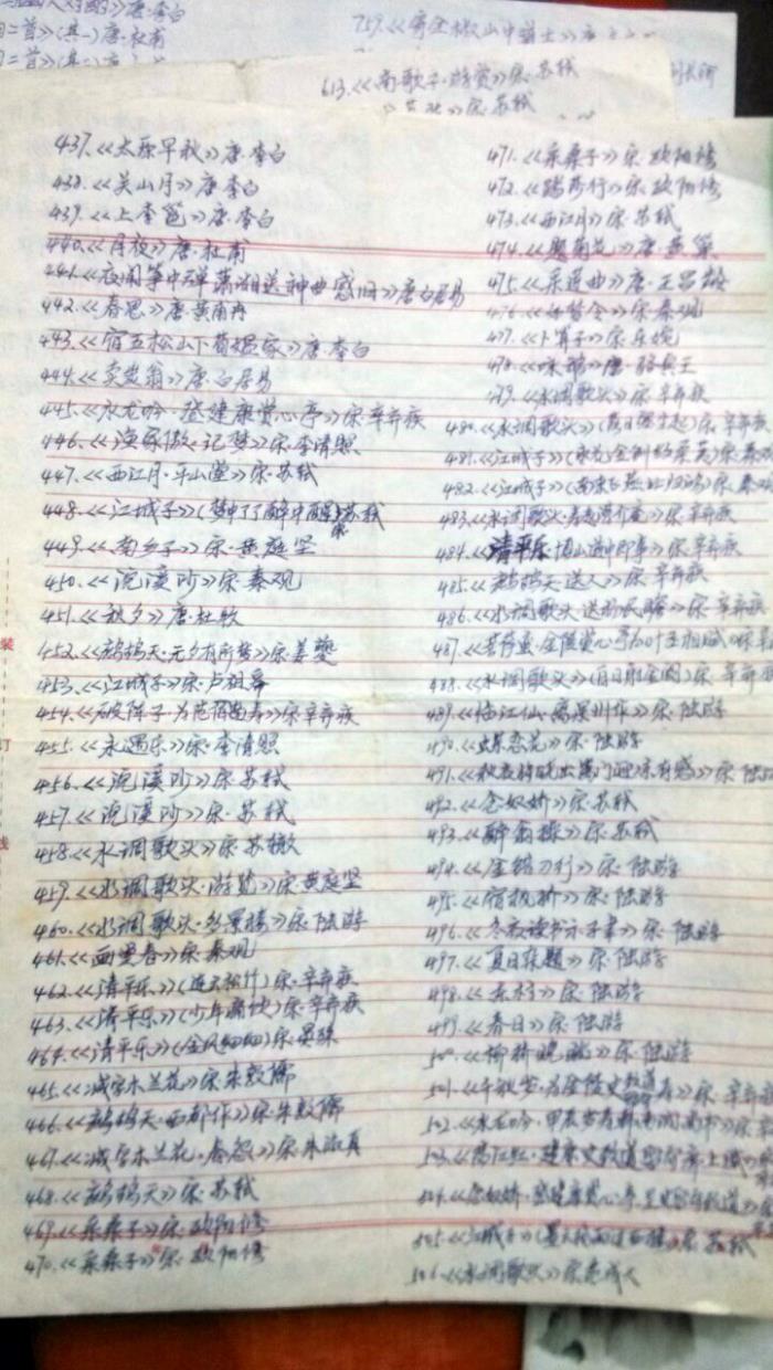 雷海为背诵古诗的部分“诗单”。受访者供图