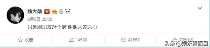 讨论热度才刚刚开始,魏大勋很快否认了恋情:只是跟朋友逛个街,谢谢大家关心。