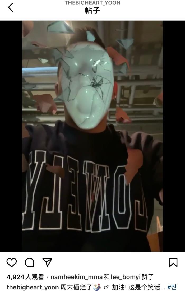 就在刘亚仁疑似公布恋情的当天,ONE冠军赛拳手“大心脏”尹昌敏也发布了一条和“脸”有关的动态,视频中他面色凝重,脸部破碎的特效与呐喊的姿态结合,传达出一种压抑的悲伤感,他在下面配文:周末砸烂了,加油!这是个笑话。尹昌敏是否是在回应刘亚仁恋情一事尚不可知,不过从以往两人的交集来看,事情并非那样简单。