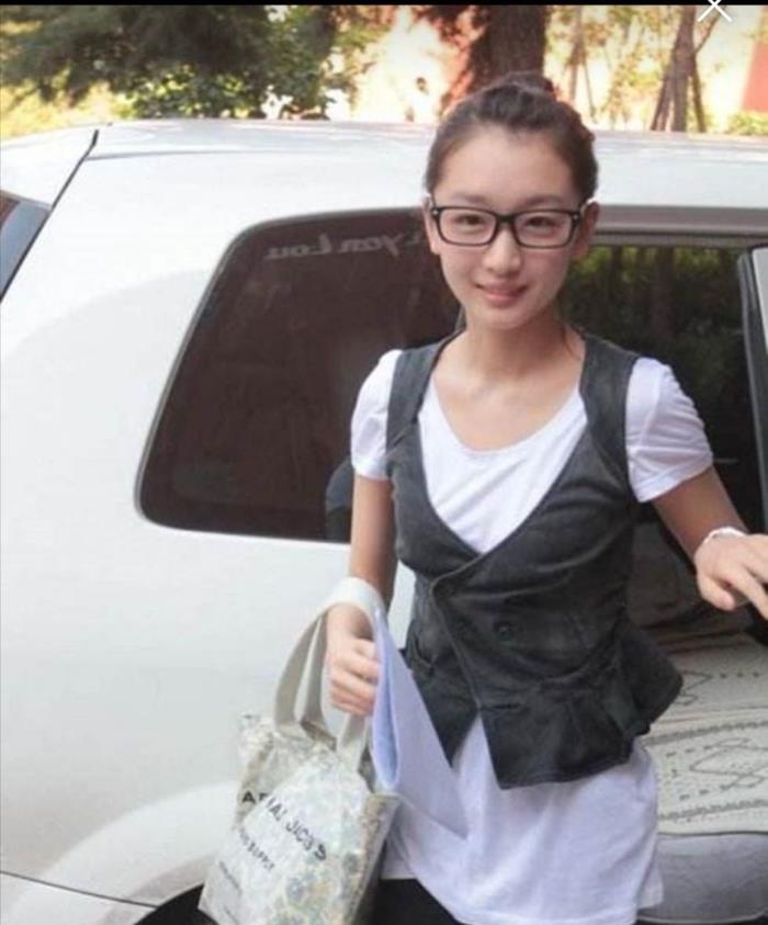 周冬雨带着黑框眼镜,穿着休闲,整体看上去非常接地气。