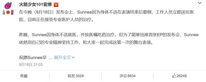 但混乱和淬不及防似乎依然伴随着这支出道以来状况不断的超级女团,这一次是Sunnee在火箭少女101首张音乐专辑发布会现场,晕倒了?