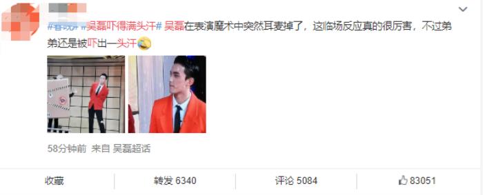 对于耳麦的意外,很多网友也对吴磊表示力挺和肯定。在2020年的春晚中,魔术节目是吴磊的第二个节目,在魔术之前,吴磊已经顺利完成了小品的表演,虽然魔术节目吴磊的出场时间不多,但是在每一分每一秒都十分珍贵的春晚上,吴磊能够出现两次,这已经充分体现了节目组对弟弟的肯定,两个节目所承担的压力也远远超出其他的表演人员。吴磊不是春晚的常客,经验少任务重,但是却将突发状况处理的十分出色,的确值得肯定。