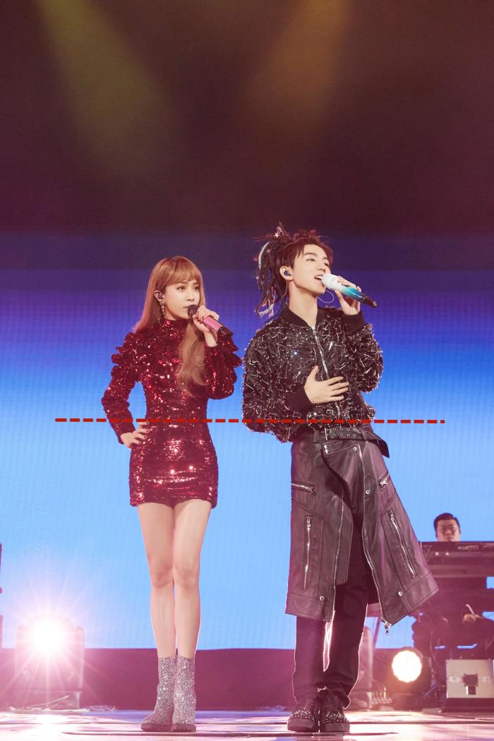 要知道,蔡依林可是出了名的体型娇小,然而当身高156cm的她与176cm的王俊凯并肩而站,神奇的一幕发生了。虽然有一截身高差,可从腰部往下去比较,蔡依林靠着好身段凸显出精致线条,看上去腿居然和王俊凯一般长,身材比例太让人惊艳辣!