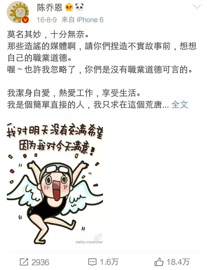 但在霍建华和林心如大婚当天,媒体又曝出陈乔恩当晚借酒消愁、大哭不止的消息,不过陈乔恩亲自上线辟谣,发文直指媒体“莫名其妙,十分无奈”。