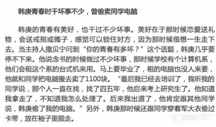 而且曾在《万物生长》的发布会上,韩庚还因为自曝自己上大学时偷过同学电脑引来舆论哗然。当时,同台做宣传的范冰冰范冰冰都听得一脸尴尬。
