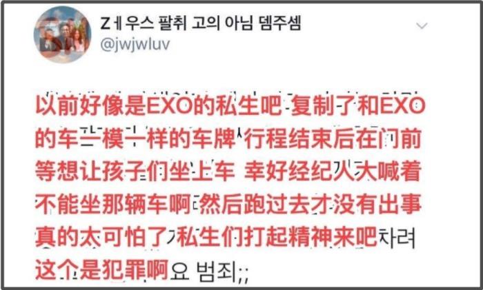 近日,又有一名网友爆料了韩国的私生行径,这次的受害者是韩国男团EXO。