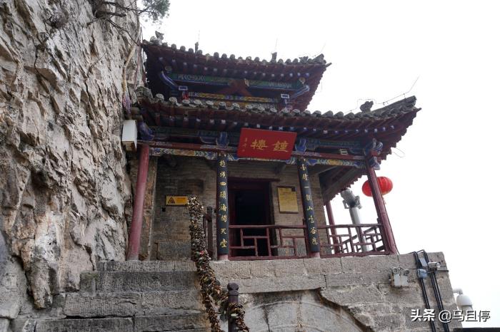 可以看得出来整个娲皇阁紧依悬崖,看起来就像是一个吊庙,那么这样一个庞大的建筑到底是如何被支撑起来的,先卖个关子,待会给大家揭开谜底。
