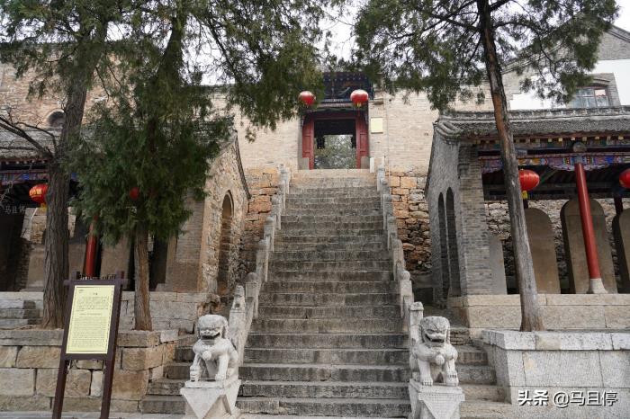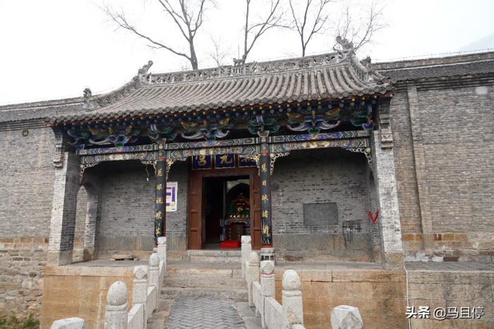 这是两进的四合院建筑, 中间为主殿,两边为侧殿,庭院中还可以看到一些古代的石刻。