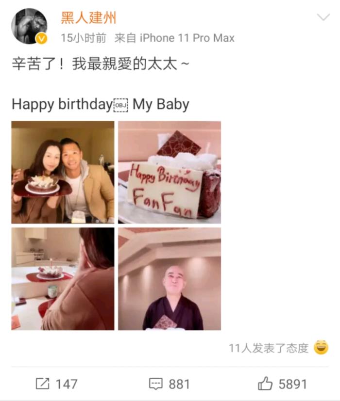 而身旁的陈建斌浅棕色西装外套内搭休闲卫衣,搂着妻子,范玮琪小鸟依人的依偎着老公,两人看上去十分恩爱,网友们纷纷祝福范玮琪生日快乐。更是有人调侃两人挨在一起就像是"黑白配"。