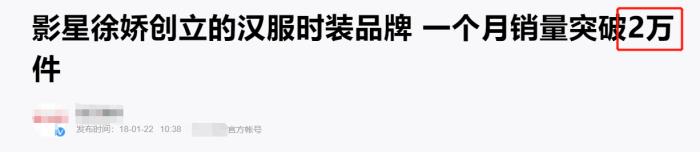 值得一提的是,徐娇创立的汉服品牌销量还非常好,曾经月销就突破2万件。