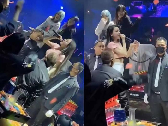 遭遇了过度热情的男粉丝,郭美美现在在夜店表演都找了不少保镖来保护自己。近期的演出,三个带着黑色口罩的彪形大汉站在郭美美的身旁,把她团团围住,场面十分震撼。