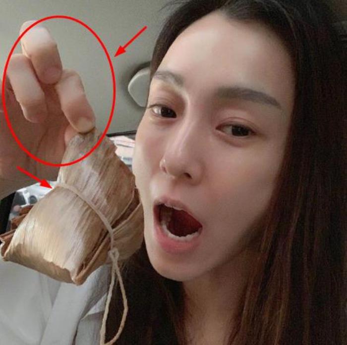 三张图中,范玮琪都是用两个手指头捏住粽子的一角,虽然脸上是带着微笑,但这个动作还是被网友发现是亮点,看来她对对儿子包的粽子还真的是有些担心啊。