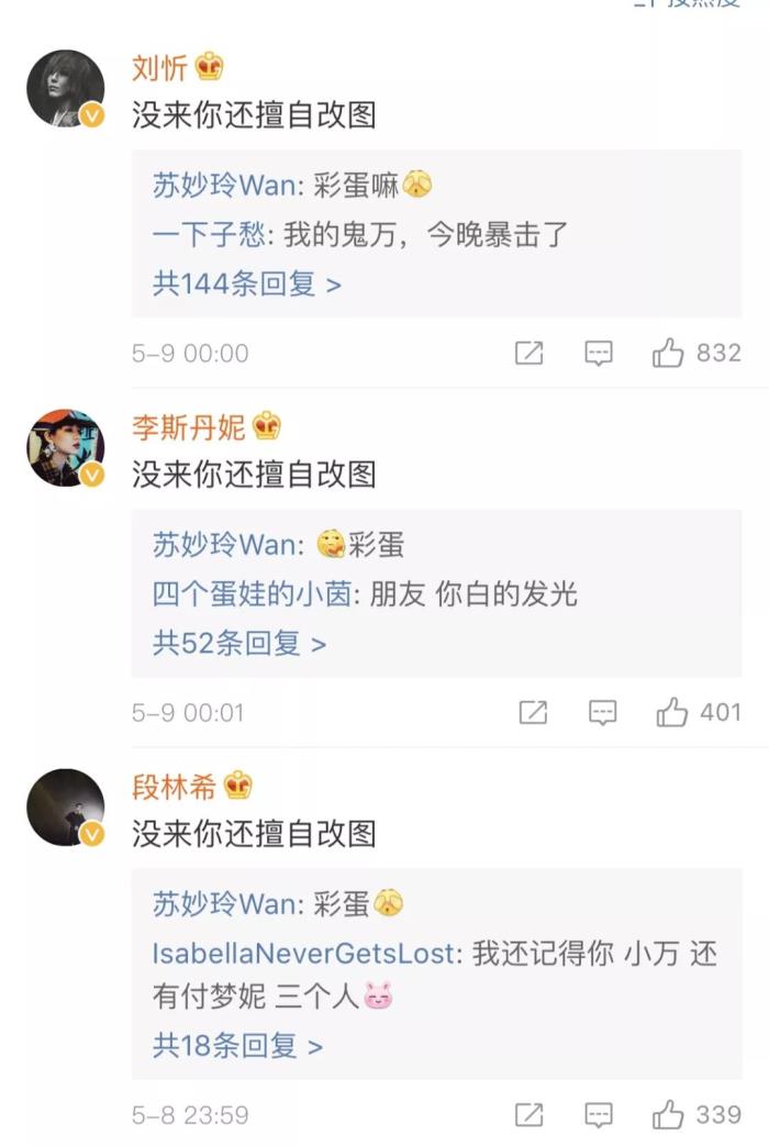 聚会当天,洪辰、付梦妮、王艺洁、苏妙玲4个人并没有到现场,但在刘忻发微博之后,她们也在各自的社交平台发布了2011届《快乐女声》重聚的消息,苏妙玲还把缺席的几位伙伴的脸p了上去,引来一众好友的互动:没来你还擅自改图。