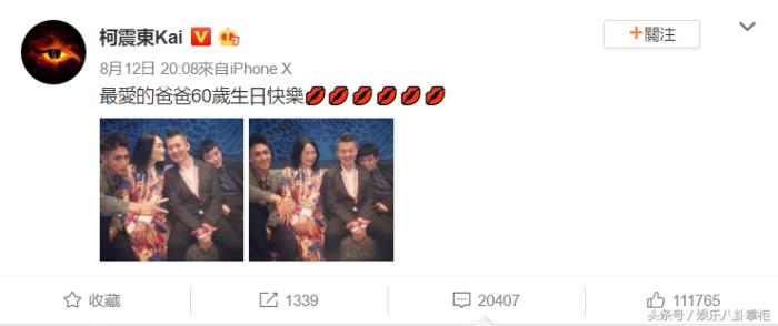 8月12号是柯震东父亲柯耀宗的生日,作为家中长子他也是在微博第一时间晒出了一家人庆生的照片。从这张合照看得出来,这一家子的颜值都非常高,尤其是已经60岁的柯耀宗,真的是越来越有味道。庆生原本是一件十分开心的事情,然而因为柯震东之前涉毒的黑历史,有部分网友就在他微博评论区留言,让他不要出来丢人现眼了:吸毒的人滚出娱乐圈!