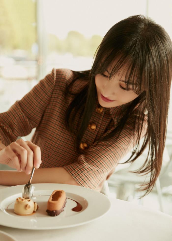 像这样轻轻的双手托腮,一个简单的侧颜,就能捕获无数直男的心。而且这和郑爽以往的风格是完全不一样的。平时的她或甜美或个性运动,但绝对不是这种请求优雅风。但你会发现,她似乎更适合这样的风格。