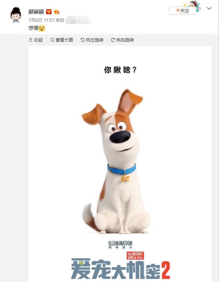 赵丽颖近日在微博上久违地发了一条微博,表示很想去看《爱宠大机密2》这部电影,还配了一个十分激动又可爱的表情,相信无论是谁看到条微博,都会被赵丽颖的可爱打动,大家纷纷在下面留言表示想带她去看,还有让你说很想看颖宝。