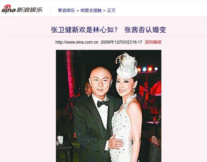 后来张卫健和张茜结婚,成为了娱乐圈人人羡慕的金童玉女,但是在2009年有媒体拍到张茜暴瘦,便传出了婚变,并直指张卫健的新欢是林心如。